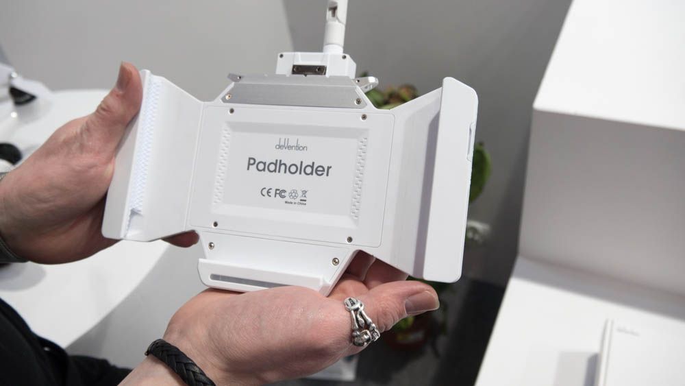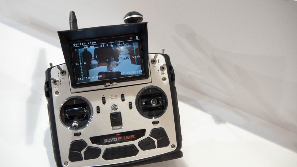 Tutti i modelli Walkera ora possono essere controllati sia con la radio (la Devo F12E che comprende un display e l’accesso ai diversi servizi) che con un tablet. E’ infatti disponibile un supporto particolare compatibile con qualunque tablet e le relative app sia in versione iOS che Android. In questo modo la pur bellissima radio diventa inutile e si può pilotare sia con degli stick touch sullo schermo sia inclinando il tablet e sfruttando così gli accelerometri.