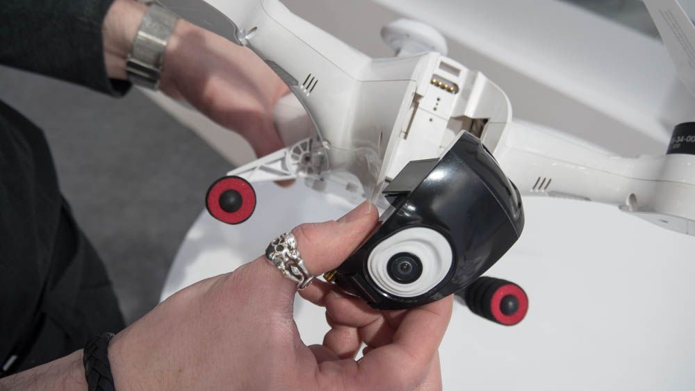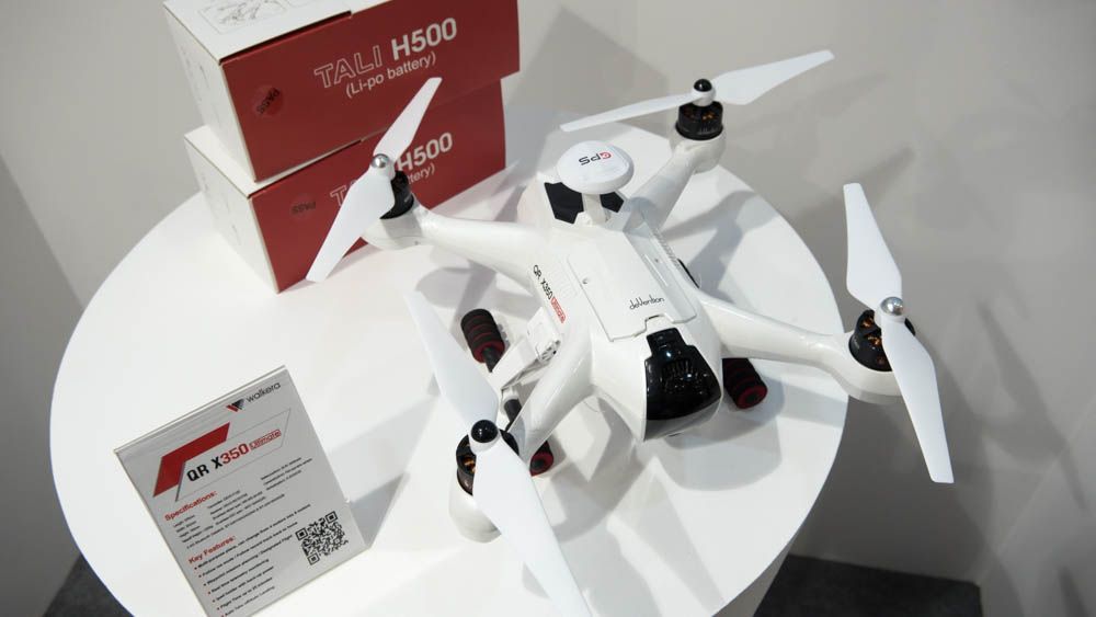 La novità della fiera è però la versione rinnovata del QR X350, un quadri di medio livello realizzato ora in versione completamente modulare. Sistemi di controllo, ricevente, carrello, eliche motori eccetera possono essere smontati in pochi secondi ed eventualmente sostituiti o modificati (ad esempio può essere trasformato in octo). La batteria è una 6S, quindi elevata potenza e durata di volo. Può essere dotato di gimbal per la videocamera Walkera o per la GoPro, anche se è dotato di una camera autonoma 4K. E’ già dotato di telemetria e altri sistemi di controllo, e supporto per tablet o radio.