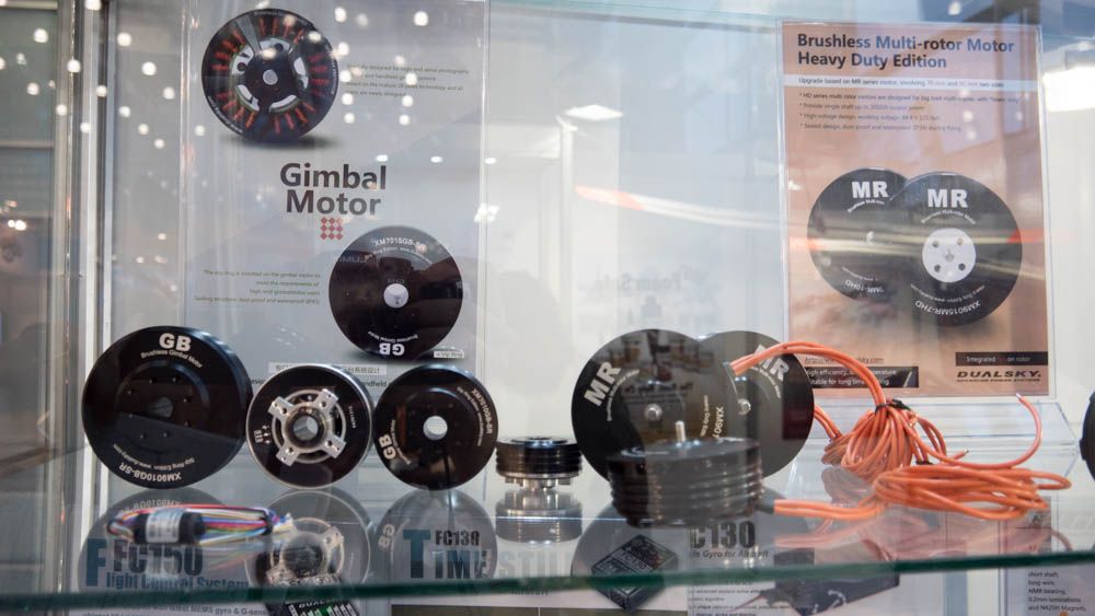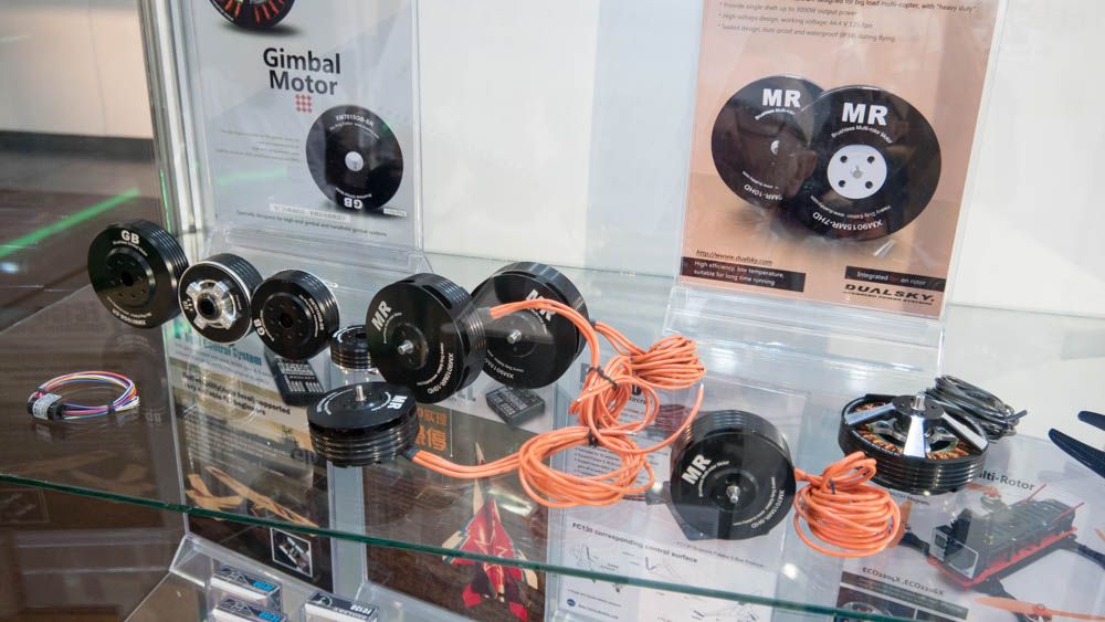 In fiera vengono presentati innanzitutto alcuni motori brushless per gimbal che raggiungono anche dimensioni considerevoli, per il controllo di videocamere di grandi dimensioni e peso: