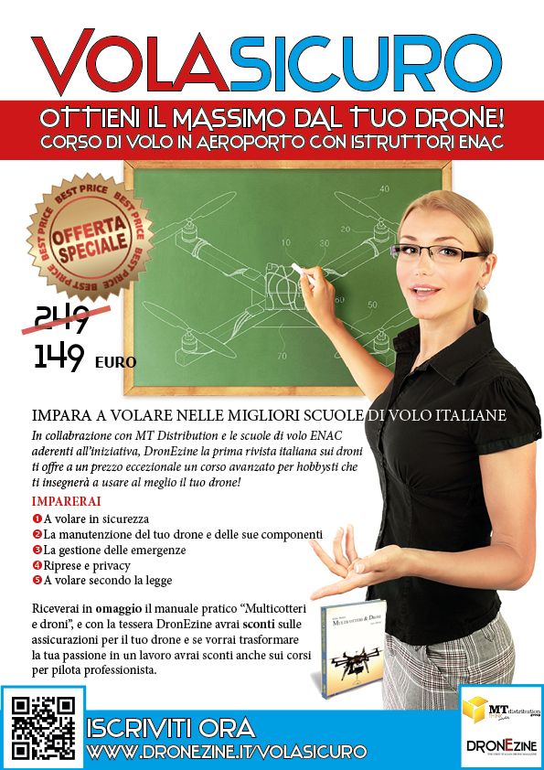 E non è tutto: nei prossimi giorni, DronEzine e MT Distribution lanceranno “Vola Sicuro”, un corso per il pilotaggio dei droni destinato agli acquirenti dei prodotti DJI nella grande distribuzione, che si svolgerà nella catena di oltre 30 scuole di volo ENAC convenzionate con DronEzine su tutto il territorio nazionale.
