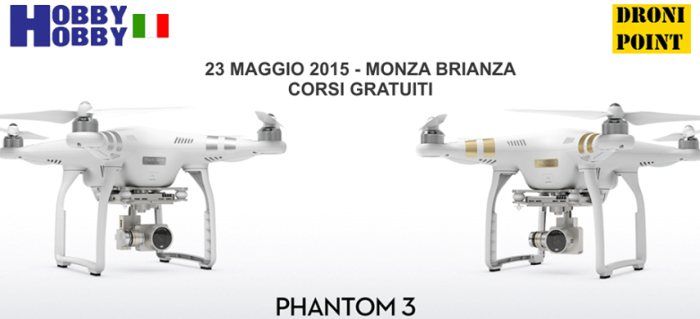 Il secondo corso che inizierà alle ore 14:00 con una durata di 3 ore circa, verterà sul nuovo quadricottero DJI Phantom 3. Dopo le necessaria spiegazioni relative alla parte teorica in aula, seguiranno alcune prove dimostrative presso una vicina superficie modellistica. Il cui trasporto gratuito, sarà effettuato con una navetta.