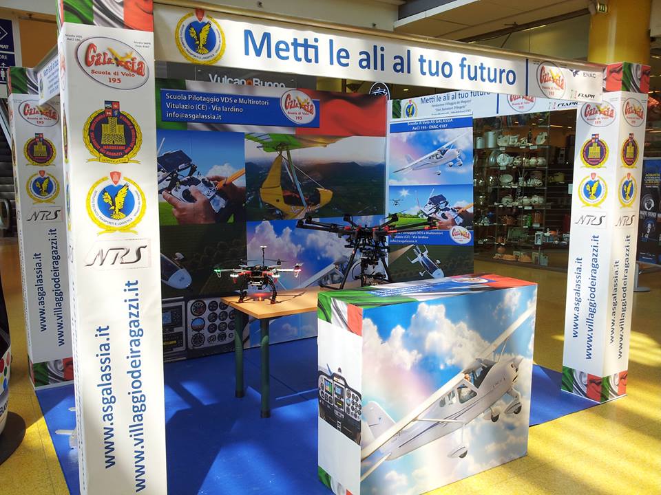 La Fondazione Villaggio dei Ragazzi “don Salvatore d’Angelo” in Maddaloni -CE-, assieme alla Scuola Volo VDS e SAPR “AS Galassia” in Vitulazio -CE- saranno presenti con due stand coordinati ed un’area demo. Grazie a loro i visitatori potranno ammirare una nutrita serie di multirotori, che oramai sono come un oggetto del desiderio per tantissimi: saranno esposti piccoli quadricotteri da addestramento, esacotteri di varie dimensioni ed un ottocottero, assieme alle varie tecnologie correlate.