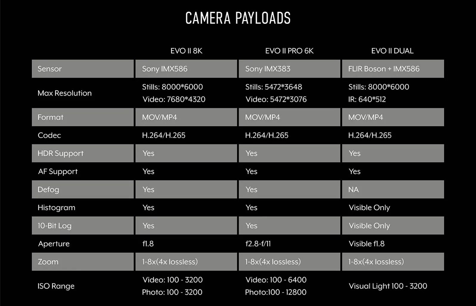 • Evo II Pro al costo di $ 1795 con camera di migliore qualità che registra a 6K e per ultimo il modello