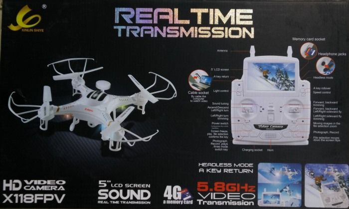 Si chiama XIN LIN X118 5.8G FPV un drone giocattolo pilotabile tramite radiocomando a 2.4GHz con accelerometri e giroscopi, telecamera per FPV da 0.3Mp e monitor LCD da 5″ integrato nel radiocomando.
