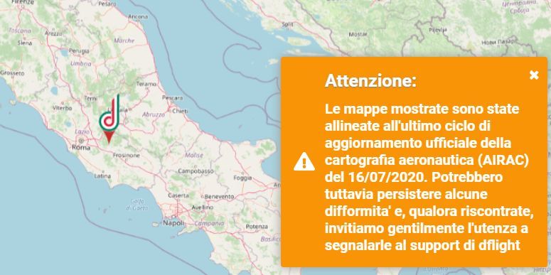 “i cicli di aggiornamento dei dati pubblicati e dei dati sorgente non sono ancora del tutto sincronizzati. L’utilizzo delle mappe non solleva gli utenti dalla propria responsabilità nel corretto impiego dei droni (e più in generale degli aeromodelli) in maniera coscienziosa e nel pieno rispetto delle regole”.
