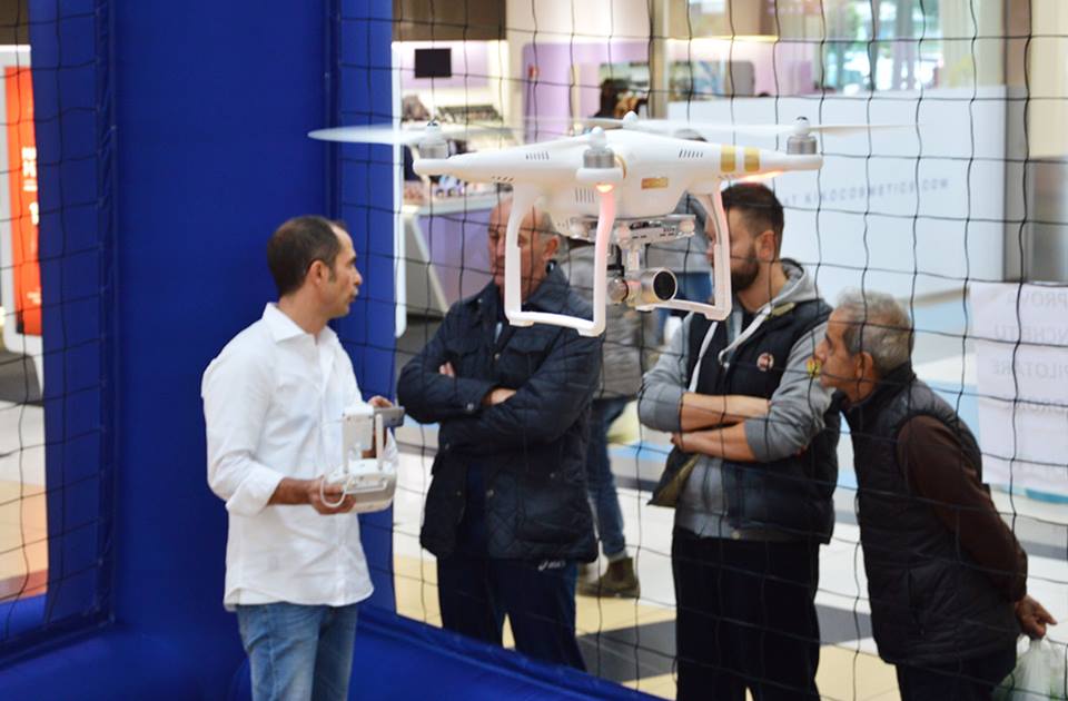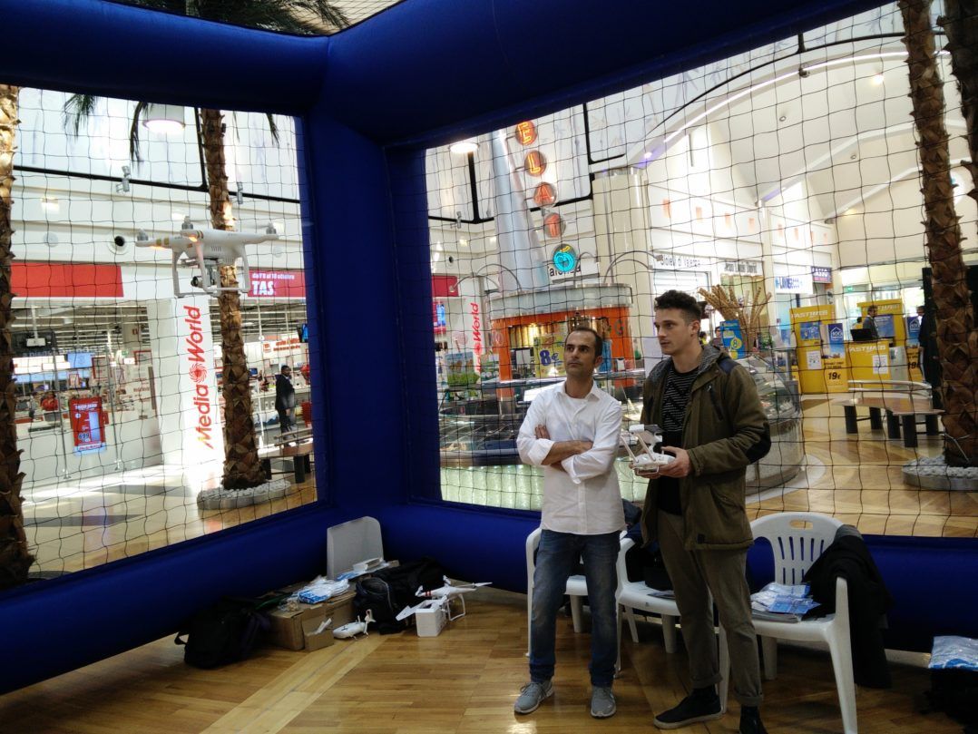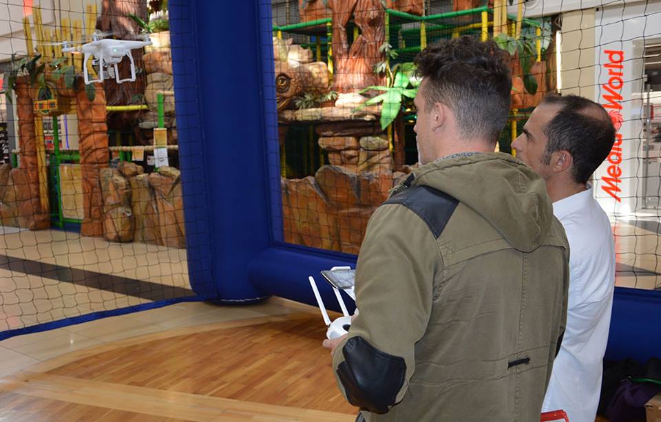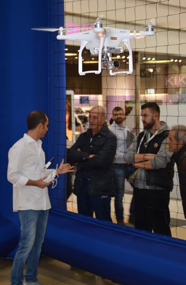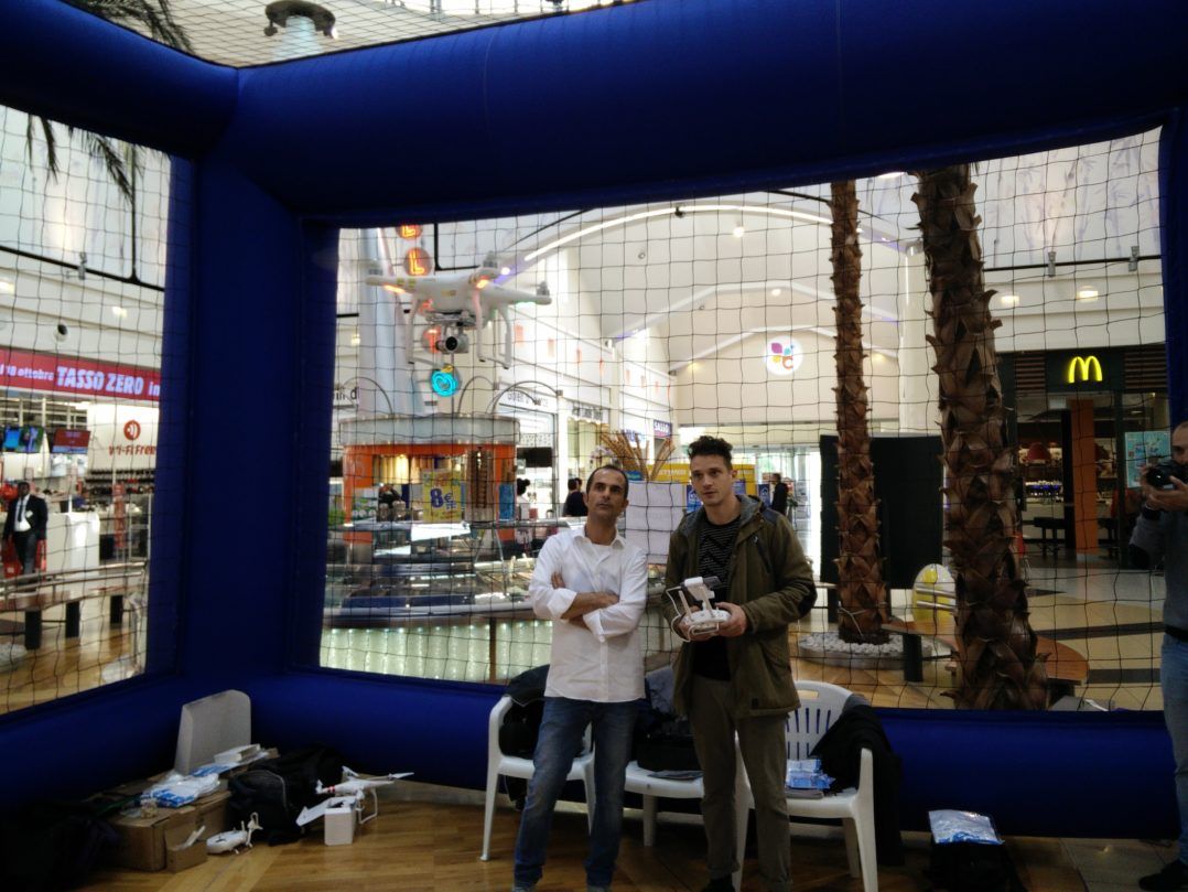 Tra gli avvenimenti in programma per avvicinare i droni al grande pubblico, MT Distribution, che fornisce i droni DJI alle catene come Mediaworld e simili, ha organizzato una giornata di voli (rigorosamente protetti da una struttura a rete gonfiabile) nel negozio Mediaworld del centro commerciale di Curno (BG). In sicurezza (è passato anche un ispettore ENAC che non ha trovato nulla da ridire) tutti hanno avuto modo di provare l’ebbrezza di pilotare le macchine a disposizione: un Phantom 3 Professional e un Phanthom 3 Standard.