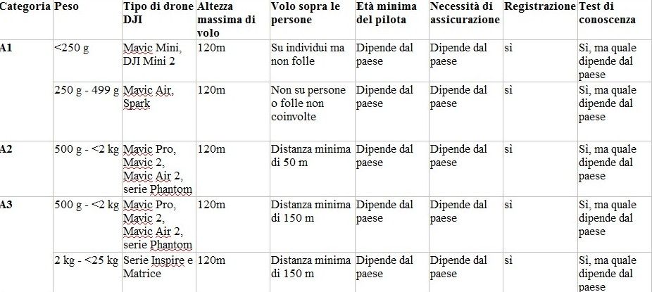 Sei qui: Home » News » DJI incoraggia gli utilizzatori di droni ad abbracciare il nuovo regolamento Europeo sui droni » tabella-djitabella-dji