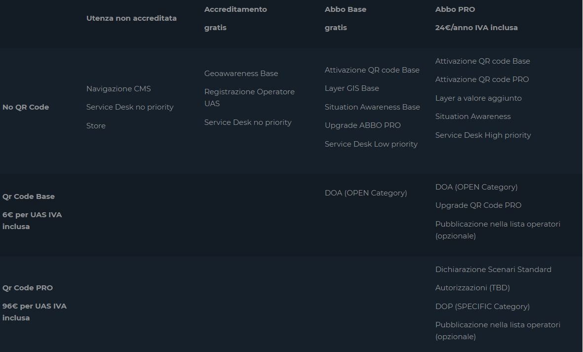 Va detto per onestà intellettuale che i prezzi sono rimasti gli stessi dello scorso anno e anzi sono aumentati i servizi disponibili per le utenze sia delle Open Category (Drone Operation Aerea) sia delle Specific Category (Drone Operation Plan e Layer a valore aggiunto).