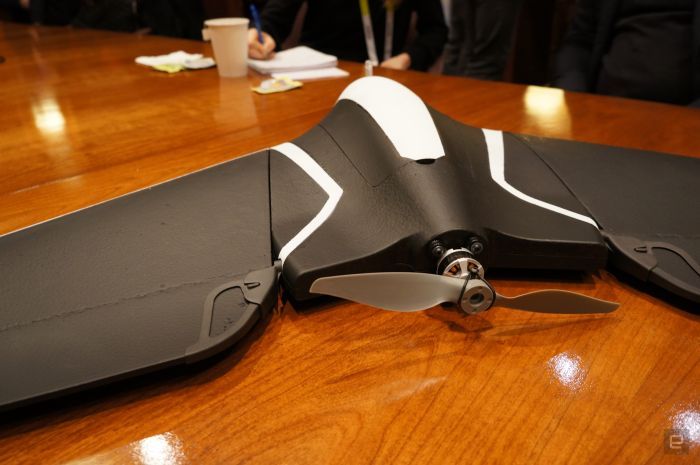 Uscendo dallo schema che vede i droni civili costituiti da multirotori a 3/4 o più eliche, Parrot presenta al salone del CES di Las Vegas un velivolo pilotato remotamente o anche in grado di volare autonomamente, ma ad ala fissa.