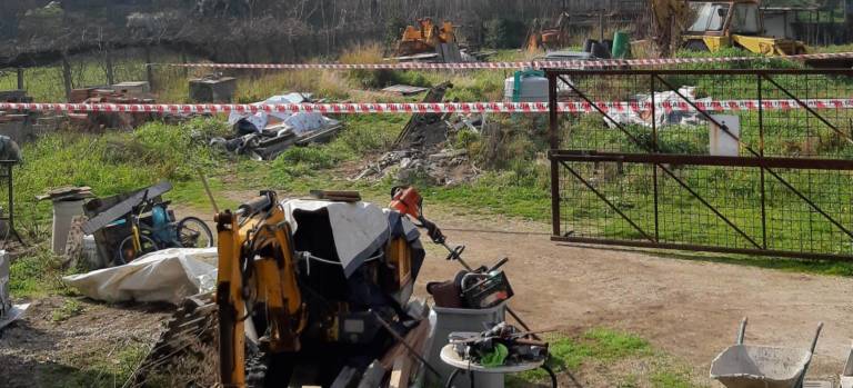 Ottenuto l’accesso al sito, nelle ore immediatamente successive è stato disposto ed attuato, con la collaborazione di uno dei proprietari presenti sul posto, il conferimento presso siti autorizzati del materiale pericoloso ed infiammabile – bombole di gas, estintori, ecc. – e, a partire dalle prime ore del pomeriggio, all’avvio di una puntuale attività di censimento dei rifiuti esistenti, consistenti in materiali di diversa natura (legnami, scarti edili, ma anche finestre, porte, mobili, solventi, materiale di risulta), per determinare il crono-programma necessario alla bonifica integrale del terreno.