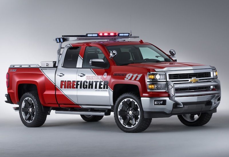 The SEMA concept Volunteer Firefighters Chevrolet Silverado Double Cab, equipped with the Z71 Off Road suspension, was developed with the National Volunteer Fire Council to honor the service of grassroots first responders and share a vision of how the all-new, more capable 2014 Silverado can be pressed into duty.L’idea è che in caso di estremo bisogno, alluvioni, terremoti, grandi incendi, stragi i soccorritori potrebbero trovarsi nella necessità di far decollare i droni rimanendo all’interno di un’auto in movimento.