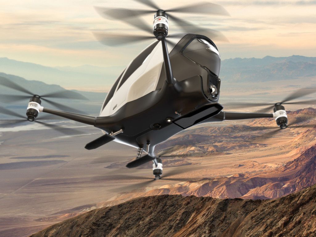 E’ il caso di Ehang, startup cinese che ben conosciamo per il piccolo Ghost, uno dei primi droni per selfie aerei nati dal crowdfunding con successo, che al CES di Las Vegas ha stupito tutti con questo arnese, un multicottero autonomo che in un futuro verosimilmente remoto potrebbe portare un passeggero su percorsi di pochi minuti (23 più o meno l’autonomia del Phantom). La macchina, chiamata EHang 184, porterebbe anche un passeggero corpulento (fino a 120 kg) che non deve toccare nulla, lo fa partire con una app el cellulare manco fosse un motorino del moto sharing e gli dice dove vuole andare, al resto pensa tutto lui, monitorato costantemente da centri di controllo remoti con personale che all’occorrenza può prendere in mano i comandi. Per ragioni di sicurezza, si tratta di un ottocottero, quindi con otto motori ed altrettante eliche, così nel caso un motore andasse in crisi la macchina può atterrare in sicurezza.