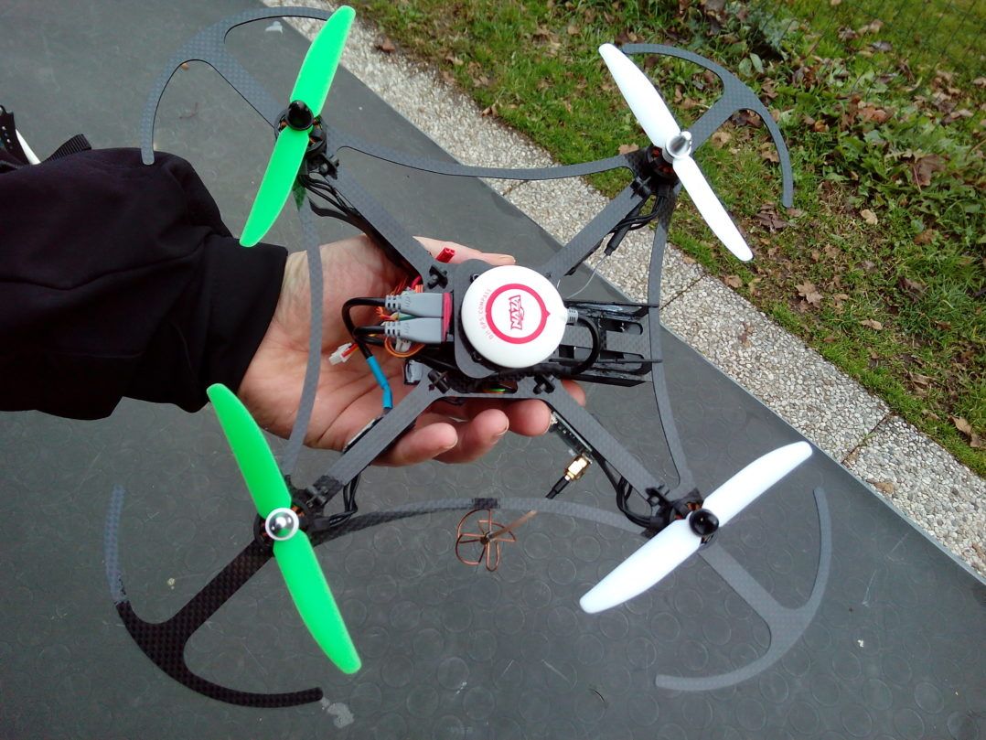 Viene fornito con trasmettitore video da 25mw, una camera Mobius che registra in FullHd, con uscita video live, una batteria 3s da 500mAh che permette un volo di oltre 5 minuti, una centralina di controllo Naza Lite o a richiesta Naza V2 e sono in corso le pratiche per la rispondenza alle operazioni specializzate nei confronti dell’Ente Nazionale Civile.