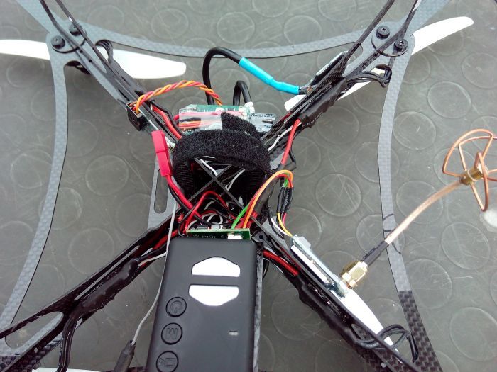 La particolarità di questo oggetto che riprende le dimensioni tipiche di un drone classe 250 con eliche da 5×3, è quella di essere interamente progettato e costruito dal team bolognese con piastra in full carbon da meno di 1 millimetro. Diventa quindi sufficientemente robusto da sopportare piccoli crash ed evitare spiacevoli torsioni che inducono parte delle vibrazioni durante le registrazioni. Tuttavia risulta abbastanza leggero da pesare 298 grammi con paraeliche incorporato, come da recente integrazione o meglio emendamento emesso da ENAC il 21 dicembre scorso.