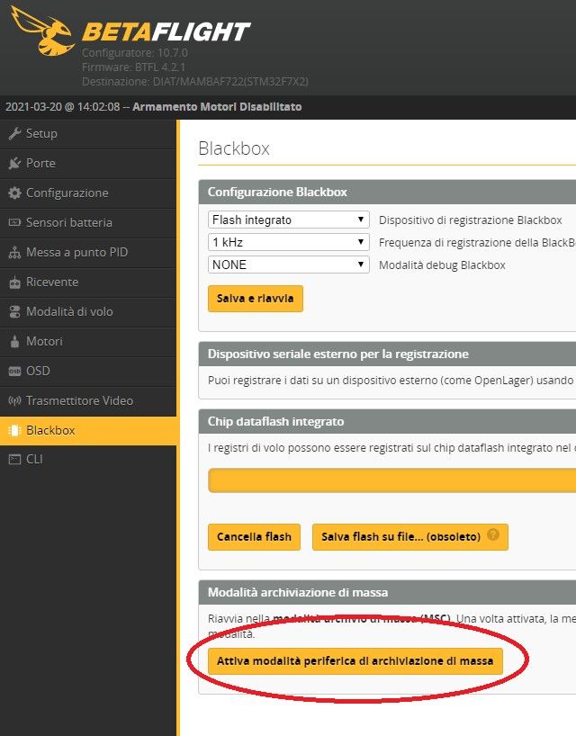 Nota: ciò che illustrerò vale squisitamente per le FC con installato Betaflight con attivata la registrazione su SD o su memoria interna dei dati inerziali.