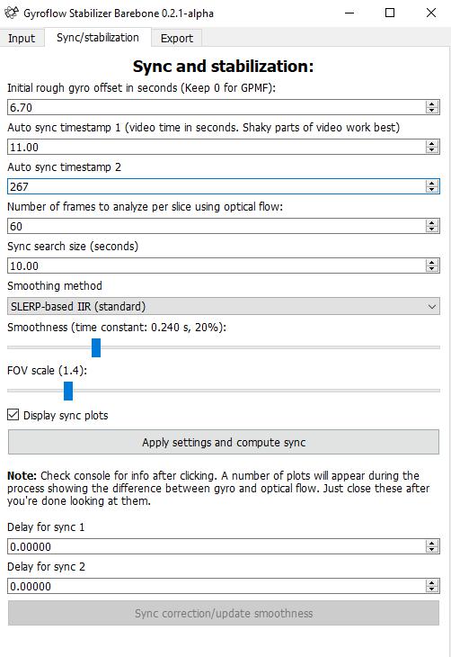 Piccola guida Mini HowTo per la configurazione del programma di stabilizzazione di video registrati con i droni GyroFlow