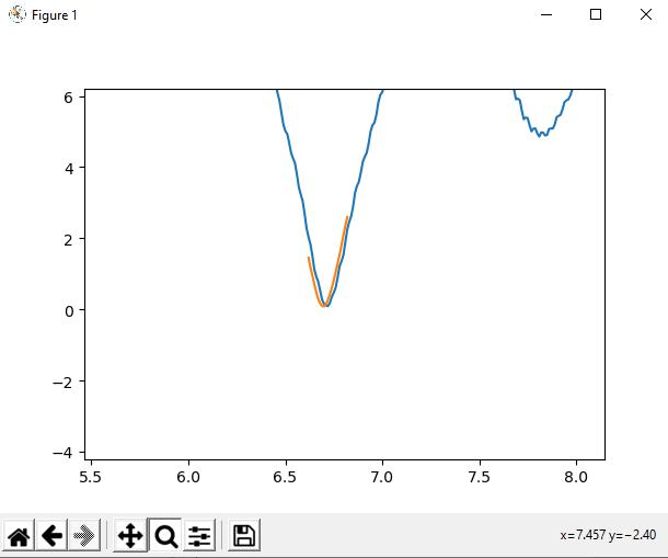 Ingrandendo la zona con il minimo locale dovreste essere in grado di vedere dove l’errore tra flusso ottico e dati del gyro si azzera. È bene che tale minimo locale sia quanto più vicino allo zero per un buon sincro.