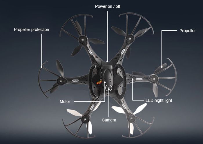 Siamo in attesa di ricevere da GearBest un multirotore dedicato al mercato hobbistico e prettamente ricreazionale con 6 motori ed eliche tripala, munito di telecamera per una visione in prima persona FPV.