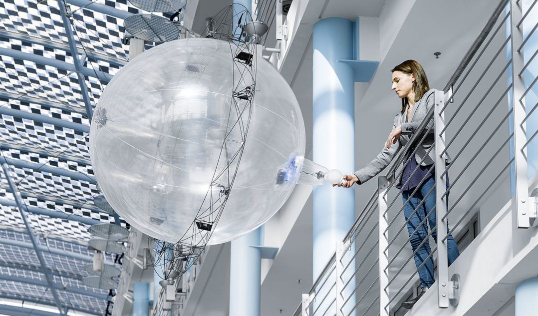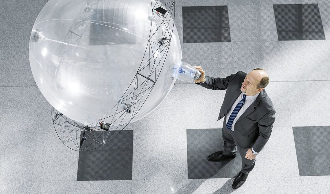 Ispirato all’anatomia dei camaleonti, che catturano gli insetti lanciando la loro (orribile) lingua appiccicosa, Festo ha sviluppato un drone dirigibile sferico, un pallone a elio con motori montati su un anello di carbonio che gli consentono di navigare in ogni direzione. Il cuore del sistema è naturalmente la “lingua”, che tecnicamente si chiama FreeMotionHandling, con cui può raccogliere oggetti di ogni natura e trasportarli a destinazione.