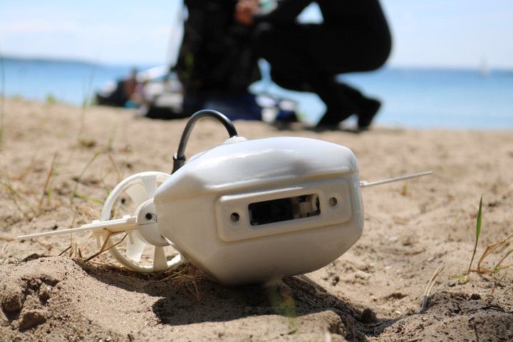 Il drone, modulare, può essere smontato e riposto in uno zaino. Si controlla con un tablet o uno smartphone, con una portata di una trentina di metri, e anche la profondità massima raggiungibile è trenta metri circa. La velocità orizzontale è di tutto rispetto, 1,5 m/sec pari a quasi tre nodi nodi o se vogliamo 5,4 km/h.