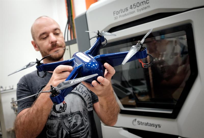 ntuIl segreto è una stampante 3D connessa con un robot industriale che aggiunge i componenti elettronici man mano che la stampa procede. Detta così sembra semplice, ma non lo è affatto, come spiega il progettista Philip Keane. “E’ stato difficile trovare componenti che potessero sopravvivere alla temperatura di stampa, 160 gradi. E quindi abbiamo dovuto modificarne alcuni e  progettarne da zero altri”. In 14 ore di lavoro la stampante è riuscita a portare a termine il lavoro, ottenendo un drone perfettamente funzionante costruito senza bisogno dell’intervento umano.