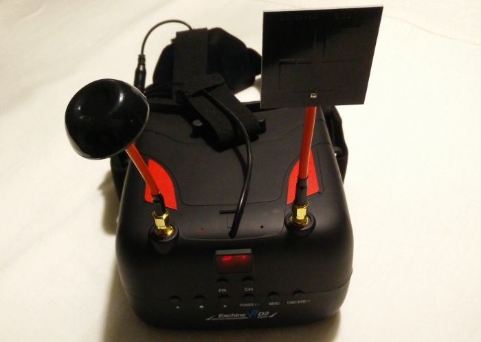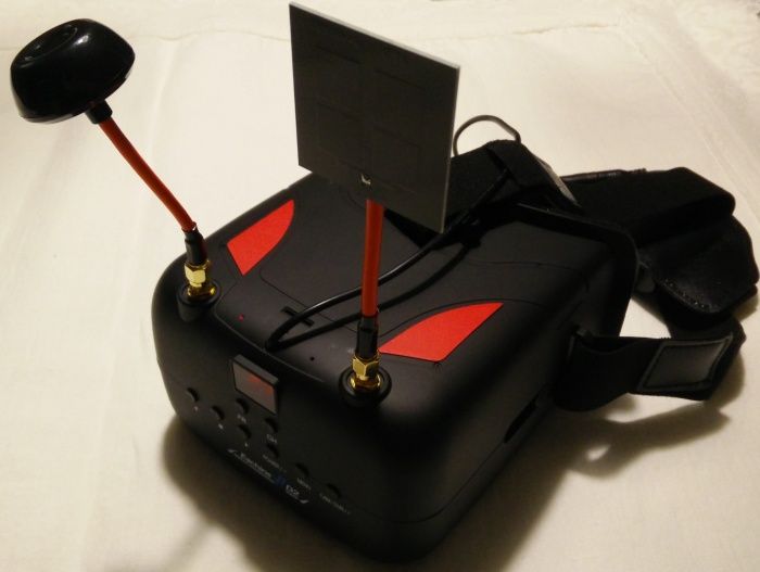 Questi occhiali o meglio questo caschetto con visore FPV integrano un recorder che registra su scheda MicroSD tutto quello che viene ricevuto via segnale video analogico e permettere persino la successiva visione con i tasti Play avanti e Indietro presenti sulla parte anteriore della maschera. Un altra prerogativa interessante e apprezzata  è quella di avere un ricevitore diversity, in questo caso è meglio parlare di due ricevitori collegati a loro volta a due antenne di tipo differente, una patch per la lunga distanza con un discreto guadagno e una mushroom per una ricezione senza angoli ciechi nel breve e corto raggio. Il vantaggio di avere due ricevitori con il sistema diversity permette di avere sul monitor sempre il miglior segnale ricevuto, evitando laddove sia possibile sfarfallamenti e neve. Ricordiamo che questo tipo di ricevitori funzionano sulla banda dei 5,8Ghz in analogico e sono in grado di sintonizzarsi con la maggior parte dei trasmettitori video per FPV presenti in commercio offrendo la possibilità di ricevere 40 canali.