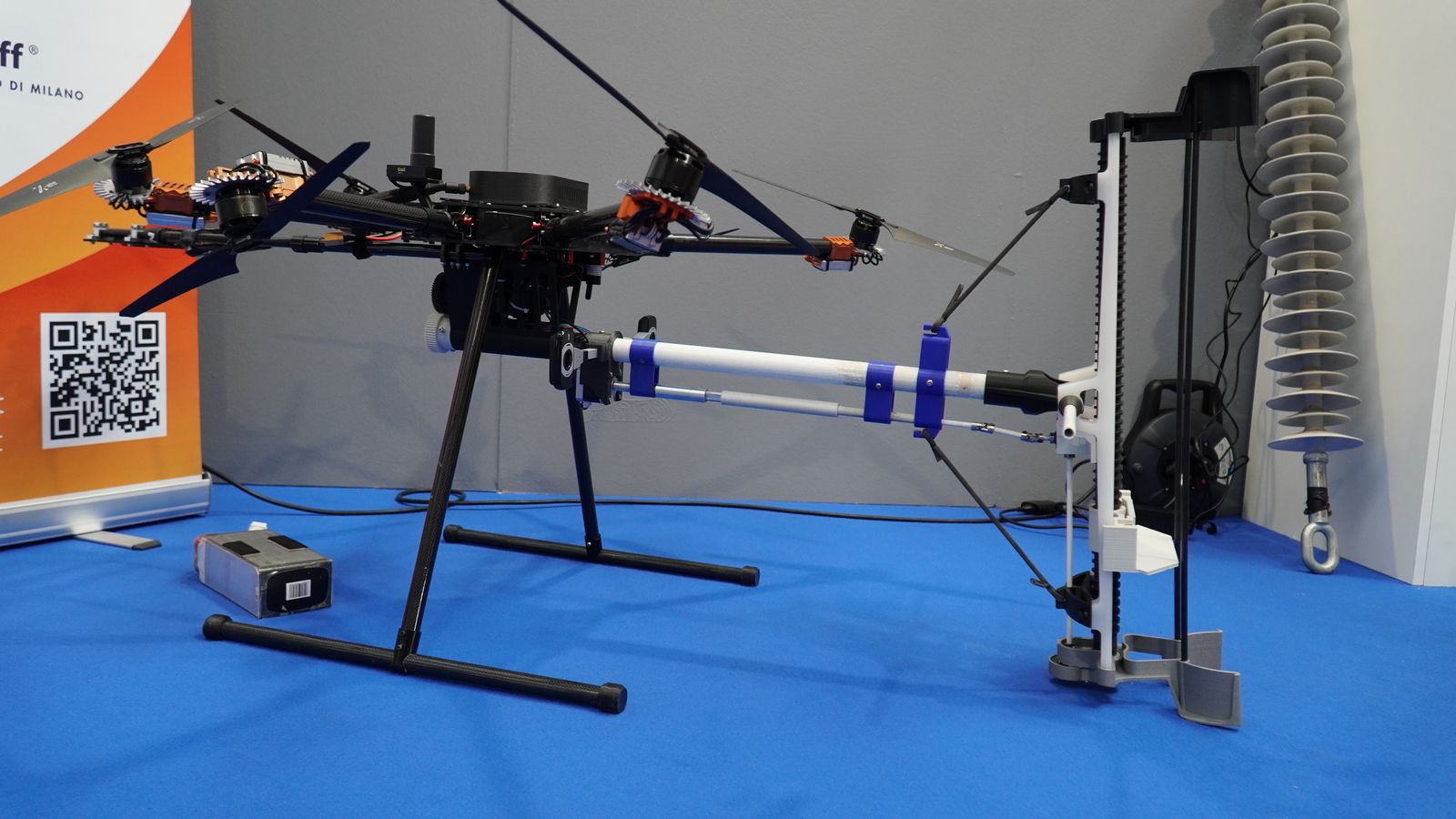 Il primo giorno partito decisamente sotto tono, ci è servito per intervistare diverse aziende. Abbiamo iniziato con i “ragazzi” o meglio giovani ingegneri di Ant-X, uno spinoff del Politecnico di Milano che ci hanno mostrato l’avanzamento del loro progetto Aries, il drone che come un ariete, portando un payload particolare, permette di verificare lo stato degli isolatori delle linee elettriche.