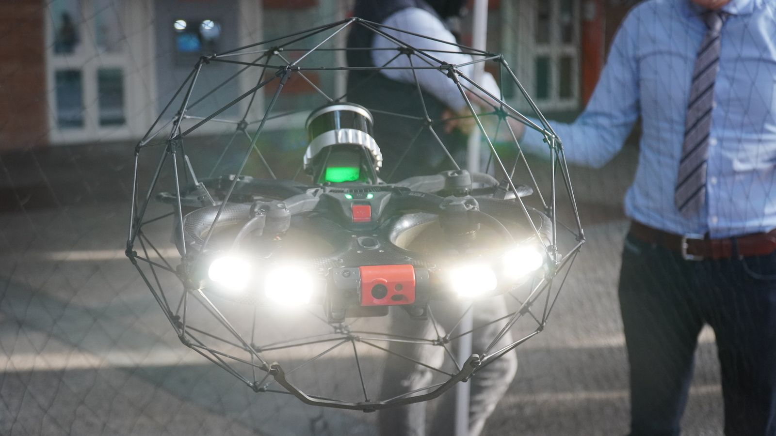Giriamo l’angolo e notiamo il personale di FlyAbility, che intervistammo nel 2021 con il loro drone interamente protetto e a forma sferica, che sta dando una dimostrazione dentro ad un piccola aerea adibita al volo demo dei droni (foto in galleria).