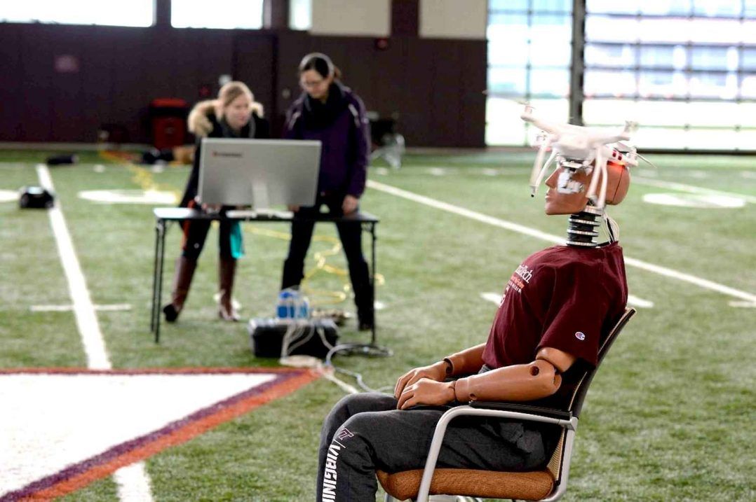 Quali sono le conseguenze di un urto tra una persona e un normale drone commerciale? L’Università della Virginia, uno dei siti che la FAA ha autorizzato alle ricerche sui droni, affronta scientificamente il tema usando i manichini per i crash test