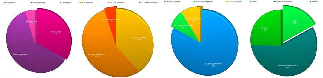 Quanto all’uso previsto, la maggioranza farà operazioni specializzate (58%), il 16% lo userà solo per hobby e il 26% sia per hobby sia per operazioni specializzate.
