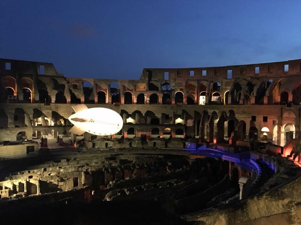 Per non parlare dell’evento / concerto de “Il Gladiatore” svoltosi lo scorso 6 giugno nella storica cornice capitolina del Colosseo, dove un dirigibile vincolato o meglio un aerostato di circa 6 metri, con controllo remoto del velivolo e naturalmente della camera aerea; ha volato sopra le teste di poche importantissime cariche pubbliche e del mondo dello spettacolo.