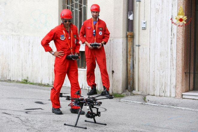 Belluno 8 luglio 2014. Il campanile di Santo Stefano manifesta segni di sofferenza e l’amministrazione pubblica teme una caduta di materiali dalla cuspide. Vista l’altezza superiore a 30 metri e le evidenti difficoltà per effettuare un sopralluogo, i Vigili del Fuoco decidono di richiedere l’intervento del Nucleo Elicotteri di Venezia. Dopo qualche ora il corpo speciale si presentata in gran forze, ma senza aeromobile convenzionale. Dal interno di un furgone sbuca un velivolo a Pilotaggio Remoto un SAPR – come viene definito dal regolamento ENAC.  Un esacottero dal peso approssimativo di 6/8 Kg dotato di video camera ad alta risoluzione e pilotato da due operatori, uno per il movimento della attrezzatura fotografica e l’altro per il controllo del drone.