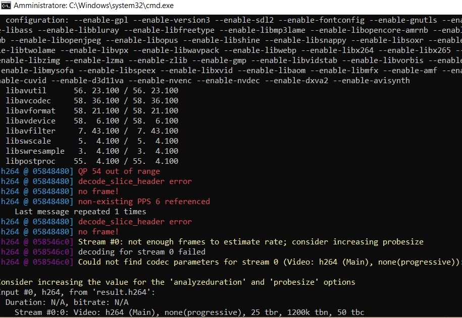 Ad un certo punto tra le righe della terminata elaborazione leggo che se si ottiene un video simile a quello della foto qui sopra, occorre provare con un altro video di referenza.