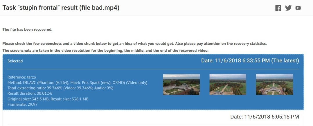 Certo il recupero non è avvenuto gratuitamente, ma l’equivalente di circa 10 euro sono un piccolo prezzo da pagare per recuperare il tanto amato e desiderato video corrotto registrato con il drone DJI.