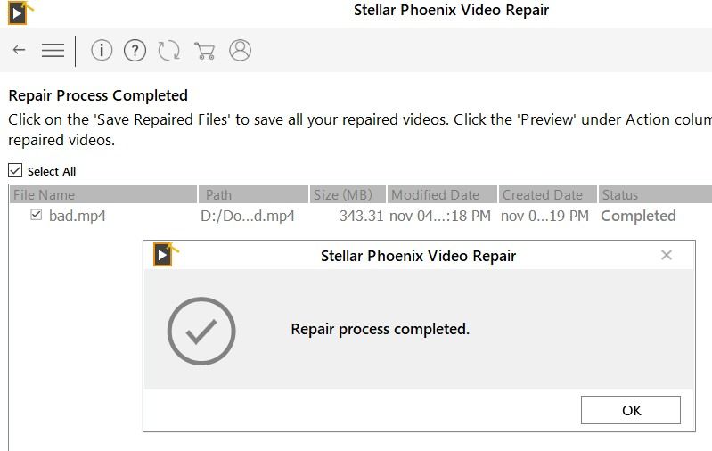 Una volta terminato se si è fortunati appare un messaggio che afferma di aver completato il processo e fa vedere anche una breve anteprima del video ricostruito.
