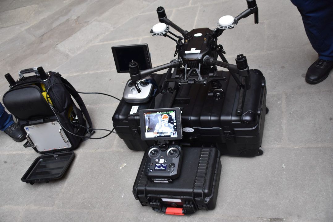 L’oggetto volante che svolgerà la maggior parte del lavoro di sorveglianza aerea è un drone realizzato in Israele che si chiama Aquila 100. Si tratta di un drone tethered ovvero vincolato a un mezzo mobile che gli fornisce alimentazione, potendo quindi rimanere a mezz’aria potenzialmente per sempre. Attraverso tale cavo, oltre ai comandi impartiti a velivolo a pilotaggio remoto, si possono ricevere flussi video ad alta risoluzione forniti da telecamere con raggio di osservazione di 14 Km.