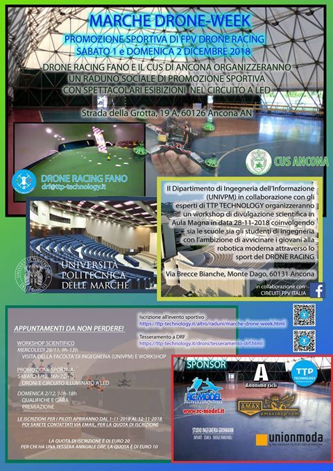 Il prossimo sabato 1 e domenica 2 dicembre a si terrà ad Ancona un evento di promozione sportiva dedicato al drone FPV Racing.