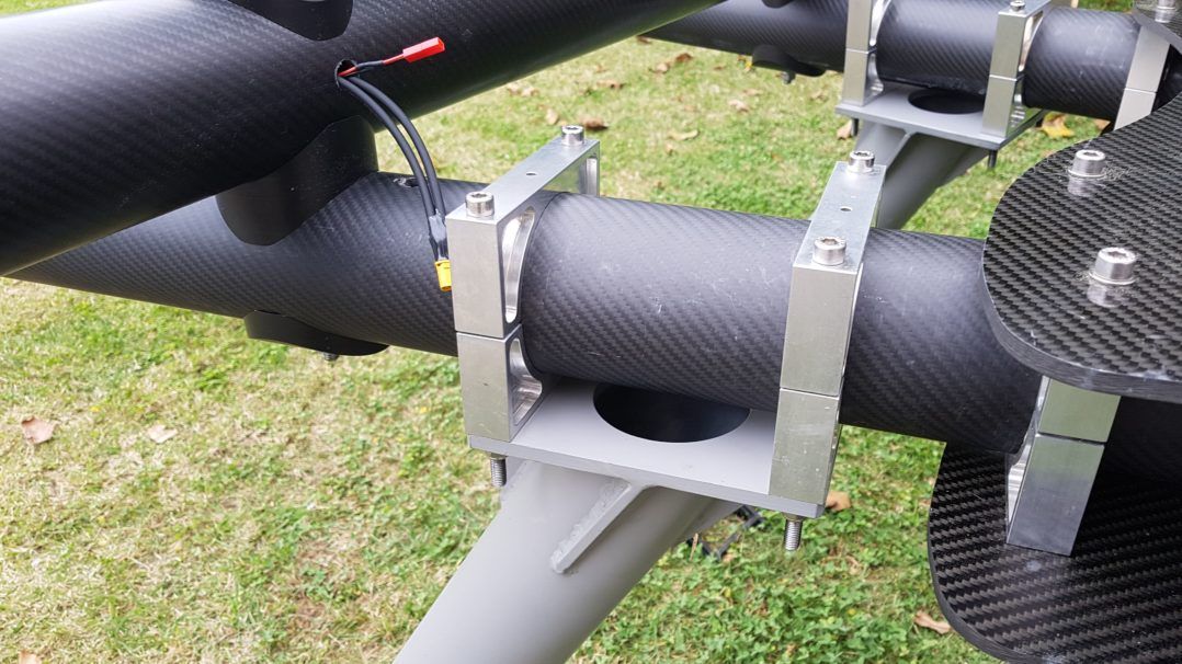 Inizialmente non adottammo un processo propriamente industriale con disegni in 3d e calcoli strutturali, ci bastava il buon senso unito all’esperienza, più un buon 10% di sicurezza. E un’idea guida: il drone doveva essere modulare. Sapevamo che ne sarebbe andata di mezzo l’estetica, il peso e i costi ma non potevamo rinunciare alla versatilità. Mano a mano che il progetto si delineava fu sempre più chiaro che non poteva restare confinato a un’idea tanto banale quanto ambiziosa come il trasporto di persone. Iniziammo quindi ad indirizzarci verso un nuovo target, forse anche più serio e concreto: il drone doveva servire come mezzo da lavoro, come gru radiocomandata, come supporto ad operazioni di rifornimento o salvataggio unito ad una flotta di velivoli manned, un mezzo complementare ad elicotteri e aerei e non sostituto. Il target 40-200 kg poteva essere tecnicamente plausibile, e il tutto doveva essere smontabile e trasportabile con facilità.