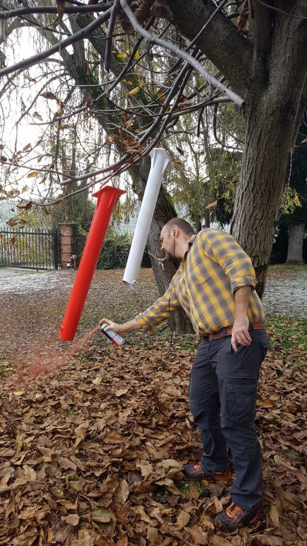 Già. Non bastava ingrandire un drone comune e collegare i cavi. Una scoraggiante ondata di problemi ci investì e ci obbligò a passare giornate e giornate ad avvitare e svitare, saldare e dissaldare, decollare e atterrare… Fummo costretti ad acquistare molto materiale diverso, molto del quale giace inutilizzato o inutilizzabile. Testammo i motori montati sugli stessi tubi che sarebbero stati parte del frame e li fissammo con un perno ad un muretto in cemento, applicammo una cella di carico dalla parte opposta ai motori e iniziammo gli studi sui motori e sulle eliche. Assorbimenti, curve di erogazione, temperature, torsioni, flessioni, vibrazioni e risonanze… tutto doveva essere tenuto in considerazione per poter immaginare che un giorno quel coso si sarebbe alzato bello parallelo e stabile. E infatti, a nonostante tutte le accortezze, non sarebbe bastato lo stesso.
