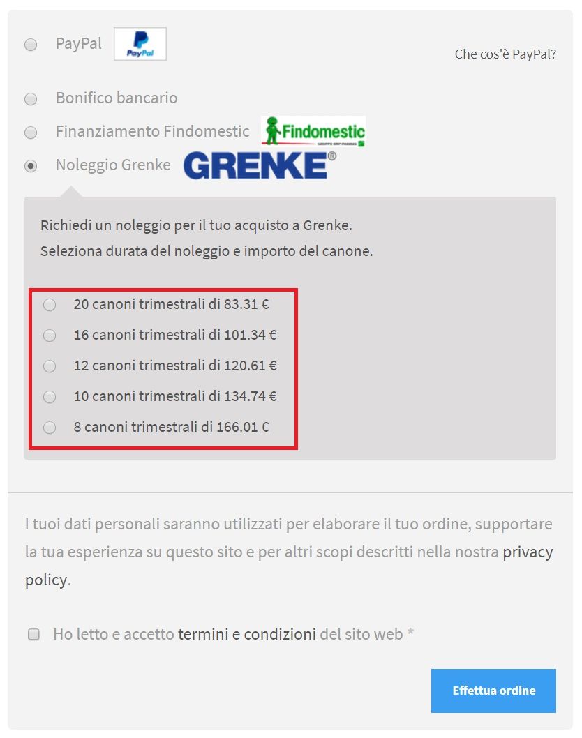 Per ogni prodotto con importo superiore ad € 1000,00 sarà possibile richiedere il noleggio operativo e calcolare la rata direttamente online: