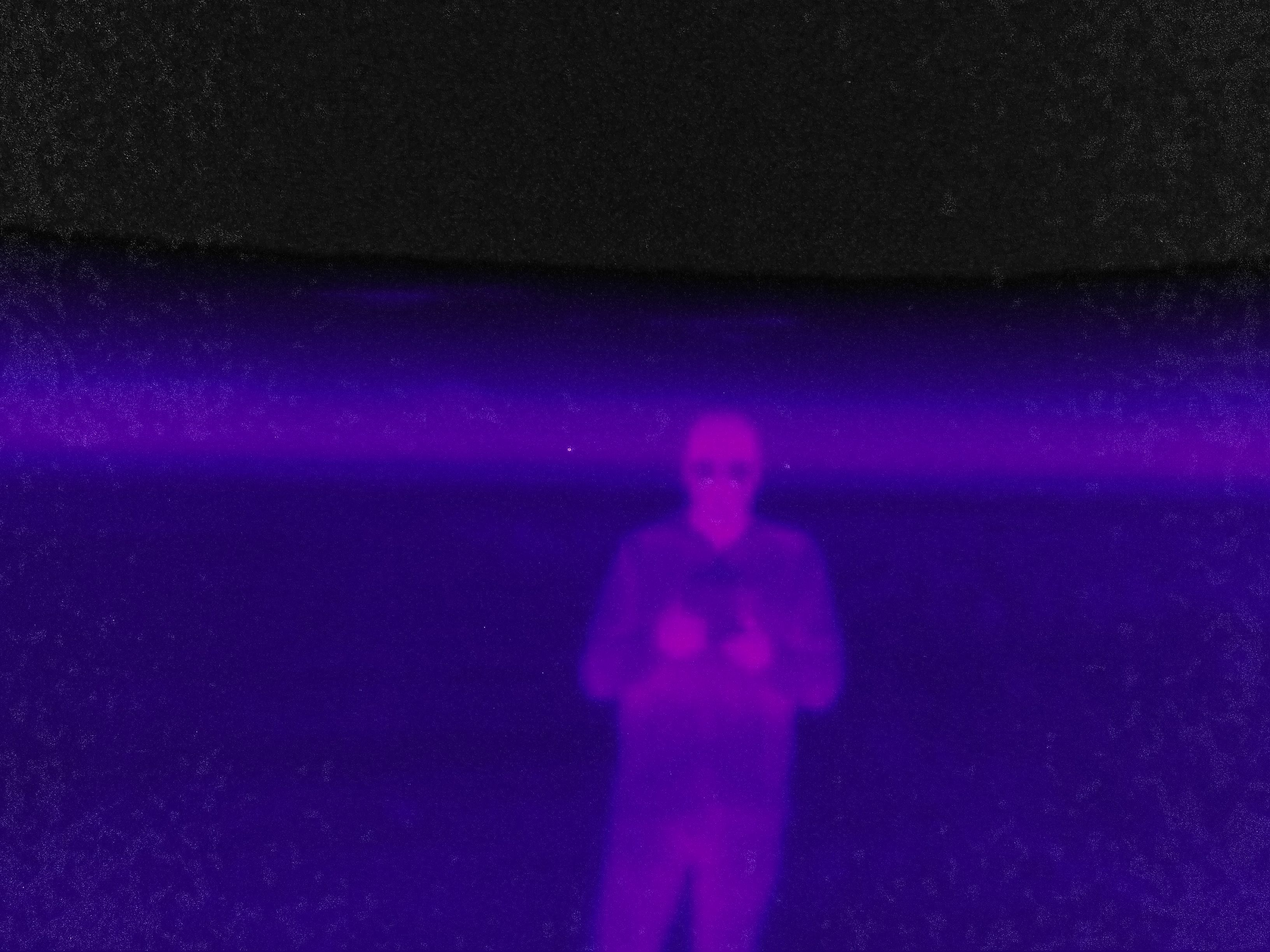 Nell’infrarosso invece il calore corporeo la rende subito più evidente. Ecco Luna in “Relativa“: in questo caso la scena riporta tutta l’ estensione termica della stanza e della gatta. Ok, un po’ sembra un sacco di patate, ma è lei che è fatta così.