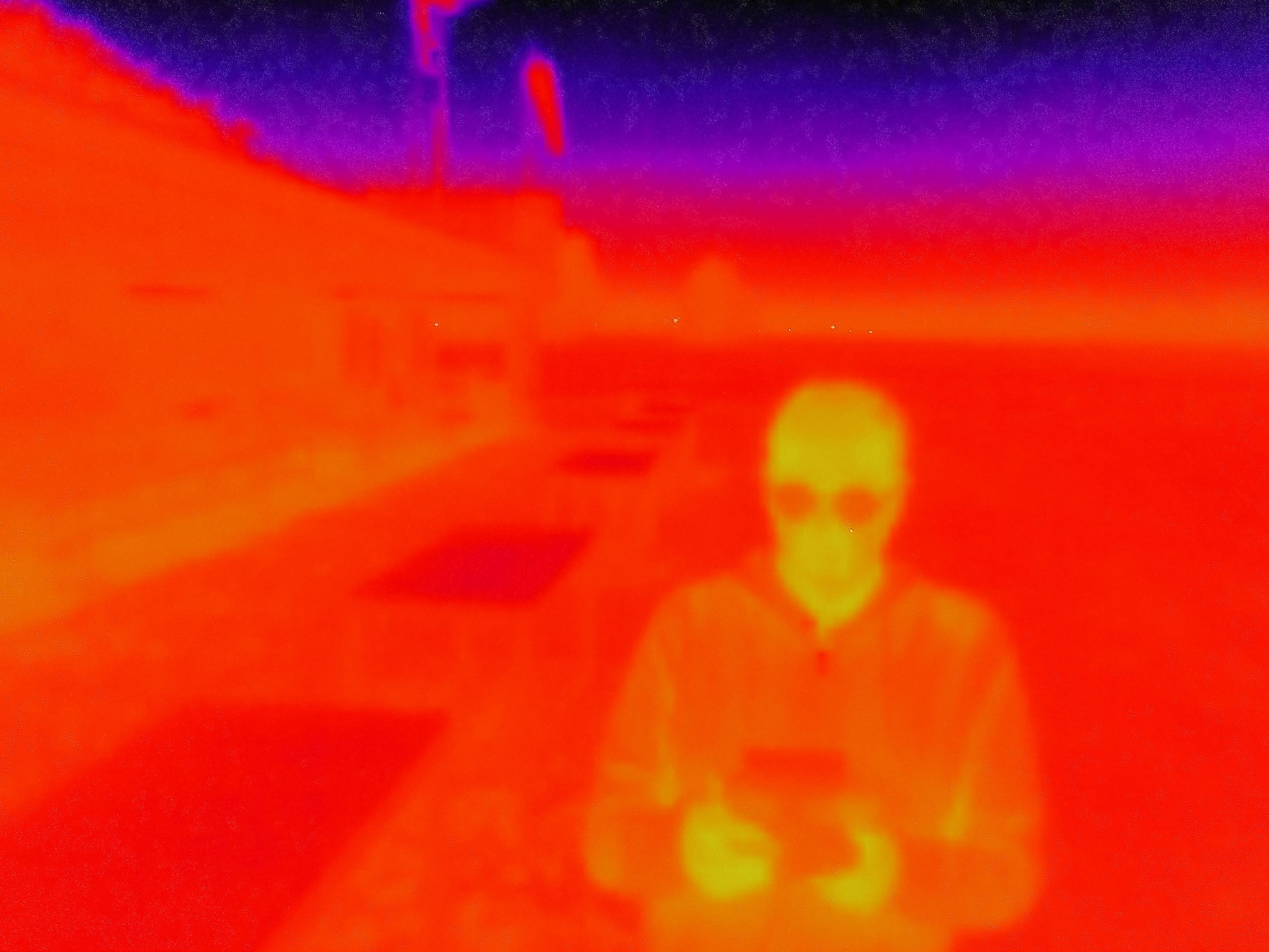 Siamo contenti di vedere che non abbiamo la febbre, visto che la nostra cocuzza riporta una temperatura esterna di 35 gradi centigradi. Una misura che riteniamo perfettamente allineata con i dati dichiarati dal costruttore, che per la termocamera FLIR dichiara un range di temperature rilevabili tra -10° e +140°C (High-gain) o da -10° a +400°C (Low-gain), con una tolleranza rispettivamente di +/- 5% e +/-10%.