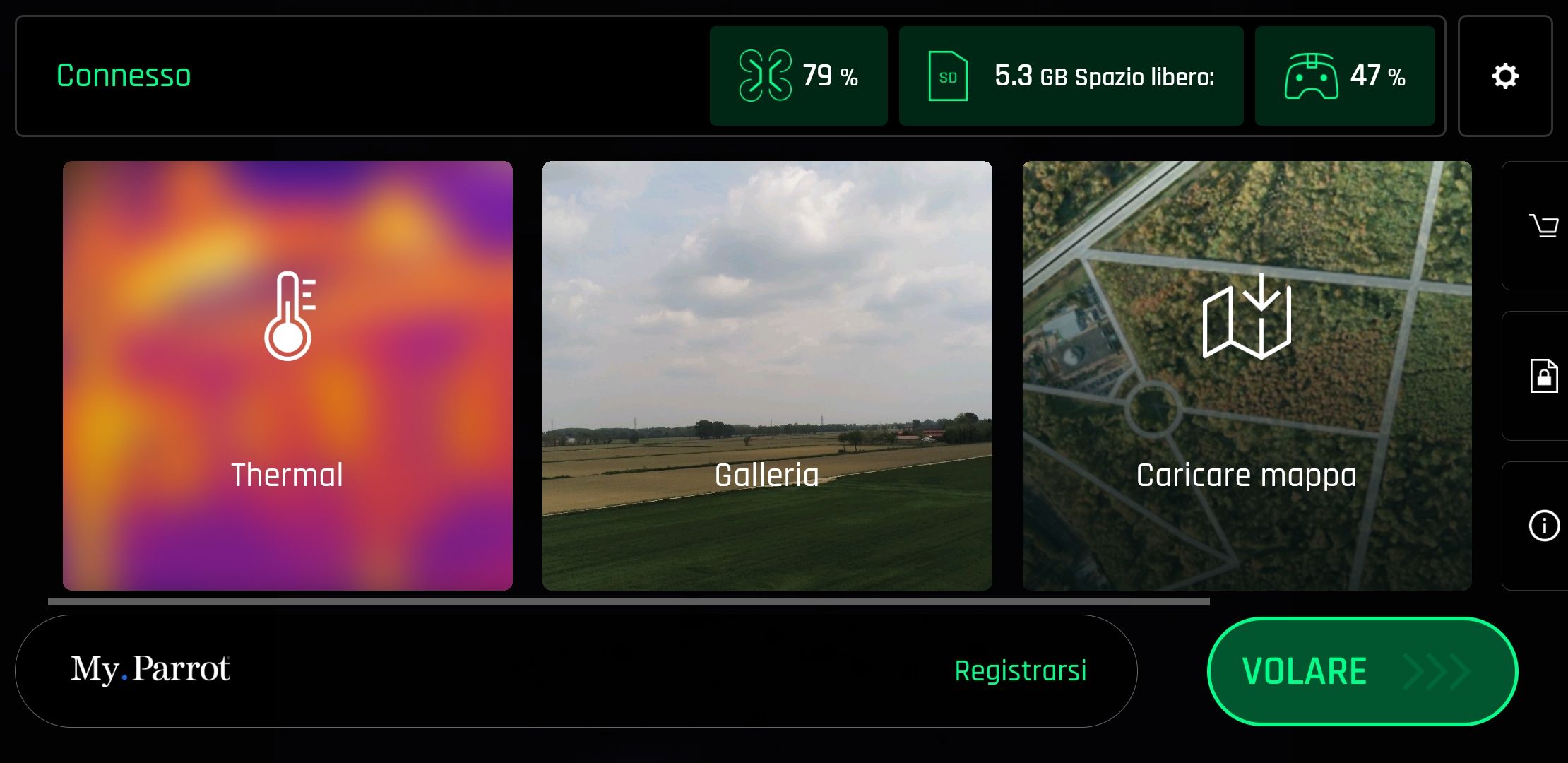 Le nostre fatiche però sono presto premiate: magia, magia ora FreeFlight 6 riconosce il nostro drone come Thermal e ci mostra subito una nuova icona che mai avevamo visto prima, ovviamente parliamo di quella con scritto sopra Thermal.