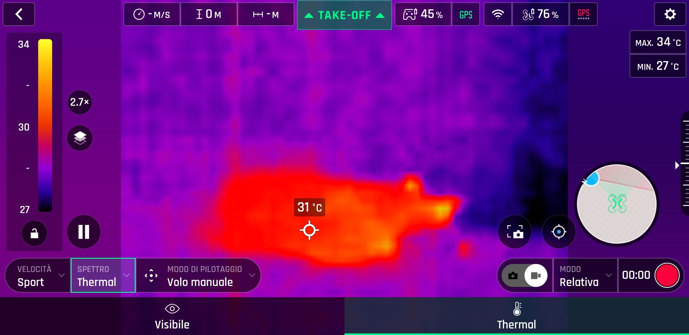 Non abbiamo nulla da aggiungere o da dire, vola come deve volare un drone di questa classe: meravigliosamente bene, un chiodo piantato nel cielo, punto. Ci sbizzarriamo dunque a cercare di scoprire il resto, e cioè cosa si può fare con la camera termica.