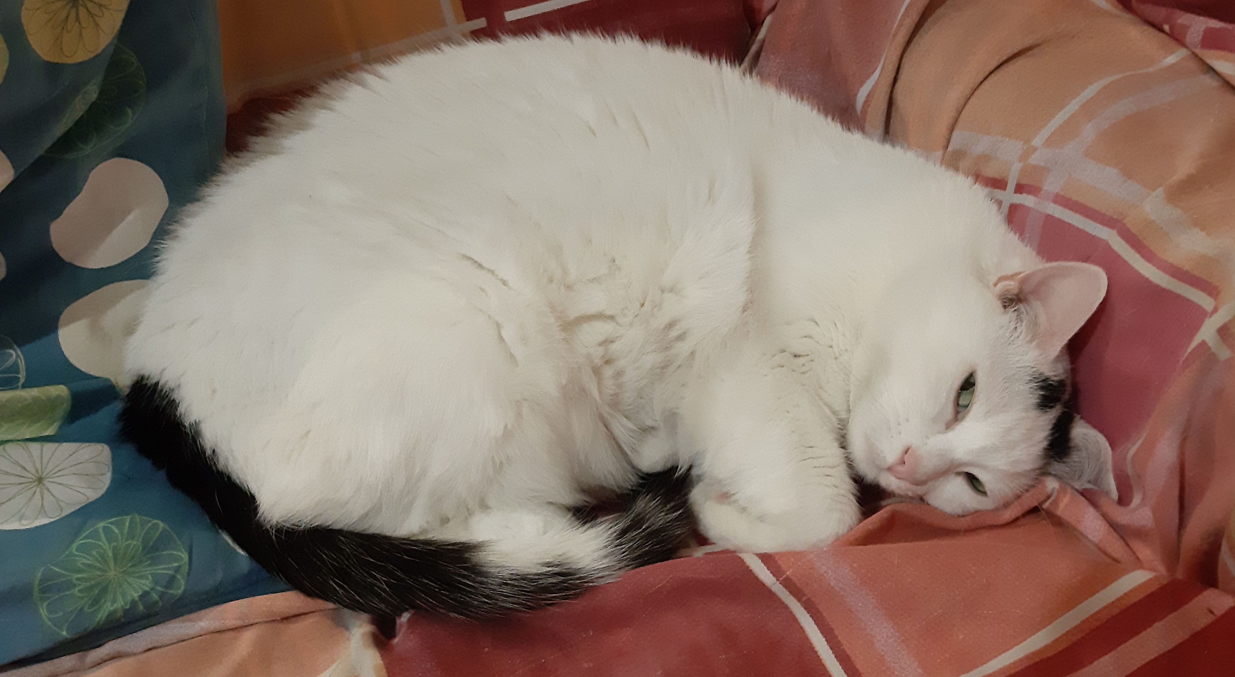L’immagine ottica ha davvero poco da dire: un gatto che dorme in una stanza buia, beh, ci vuole una certa fantasia a vederlo, anche se Luna è bianca e quindi un poco spicca. E soprattutto la sua passione per una nota marca di scatolette per gatti l’ha resa, diciamo così, “di una certa presenza scenica”. Tanto che la veterinaria l’ha messa a dieta. In tutte le immagini abbiamo usato lo zoom ottico praticamente al massimo, 2,7X, per riprenderla da una certa distanza ed evitare di svegliarla, altrimenti avrebbe chiesto altro cibo ma appunto è a dieta e non si può.