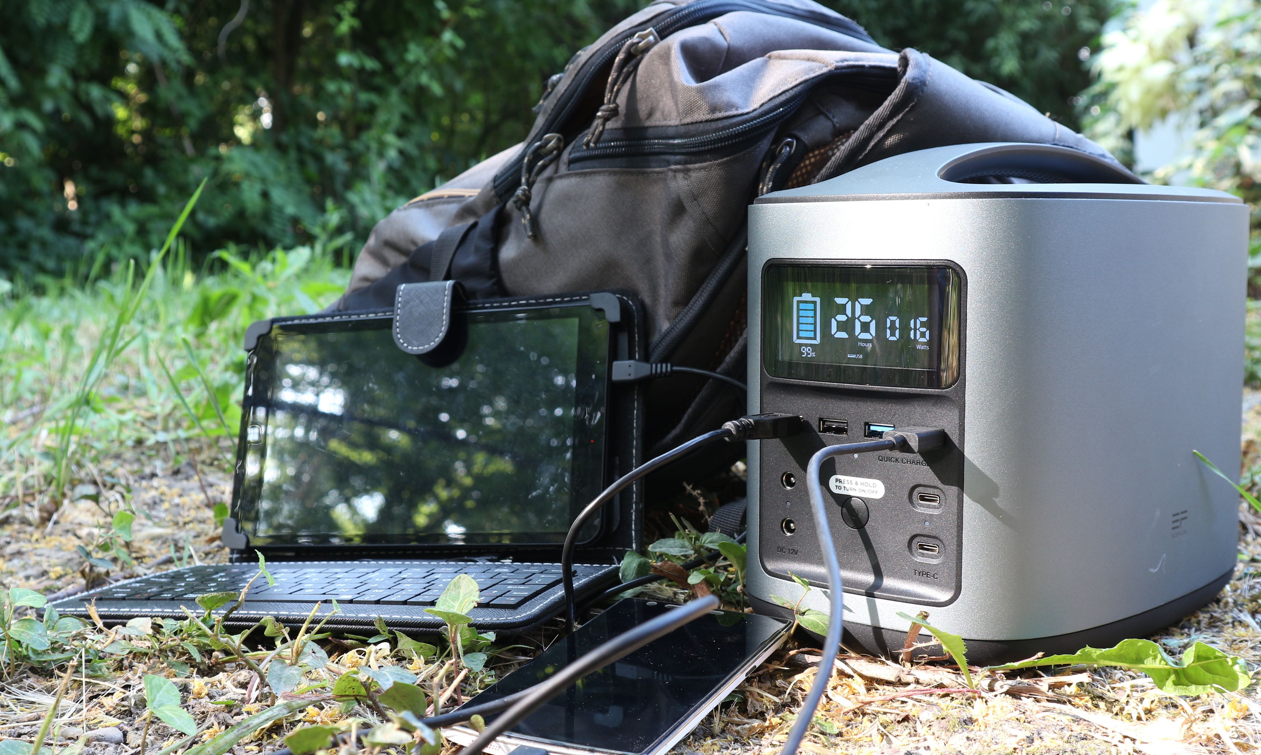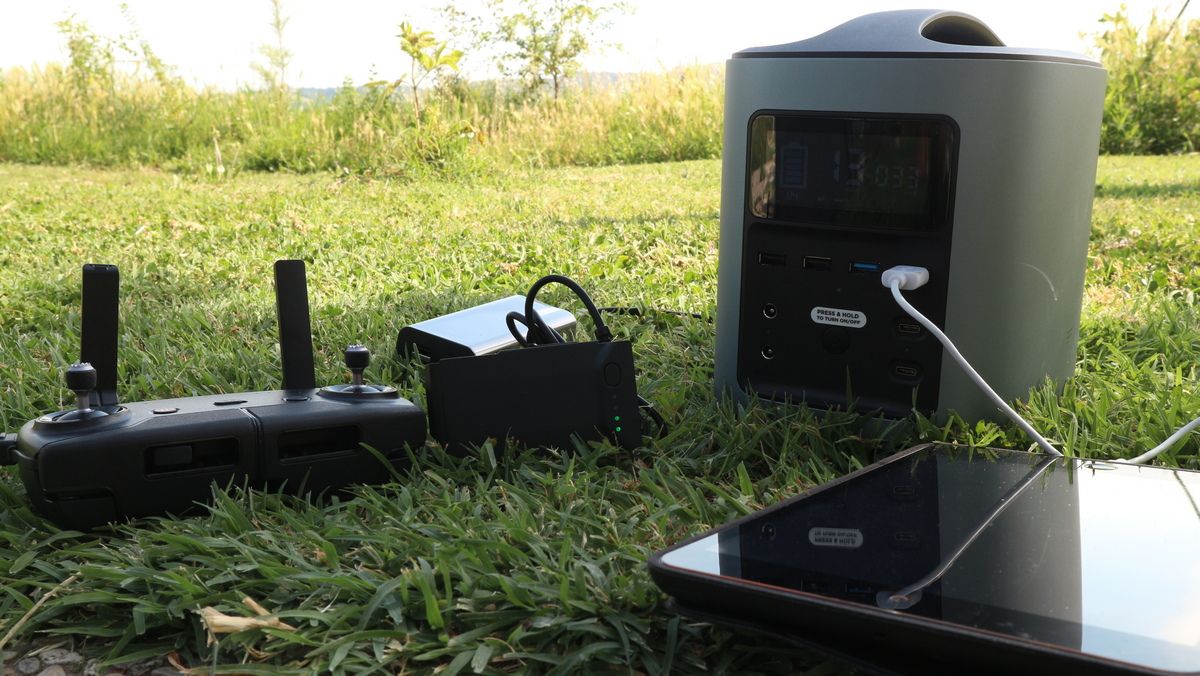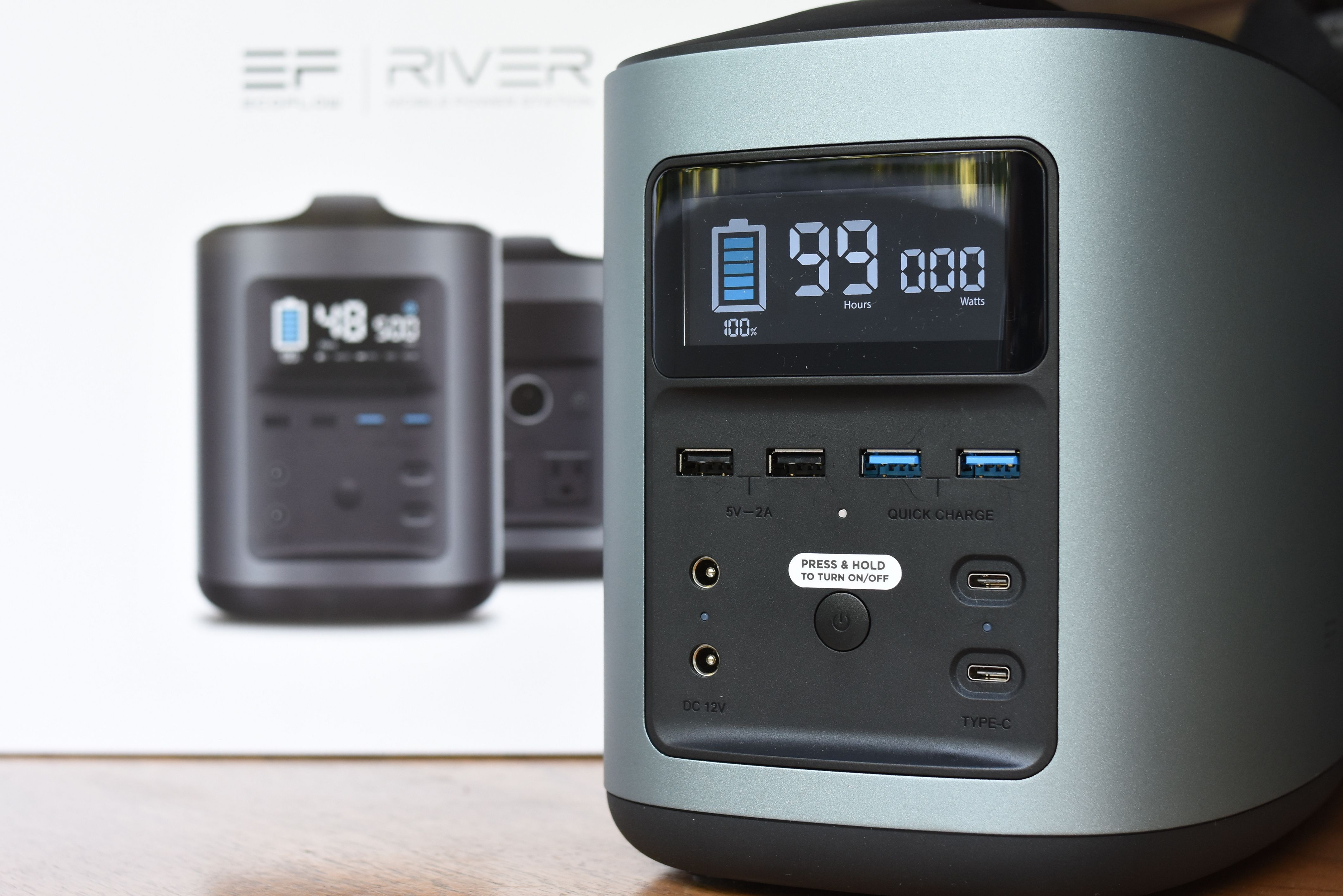 Il River Bank della linea EcoFlow, offre una sorgente in grado di far funzionare video proiettori LCD, ricaricare il computer portatile, ricaricare le batterie del nostro drone e tutti i suoi accessori.