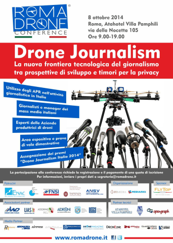 L’8 ottobre presso l’Atahotel Villa Pamphili, affronterà il tema “Drone Journalism. La nuova frontiera tecnologica del giornalismo, tra prospettive di sviluppo e timori per la privacy”. Durante l’incontro verranno approfonditi i possibili utilizzi dei droni nel campo del giornalismo. Gli aeromobili senza pilota sono infatti in grado di scattare foto aeree da punti di vista inusuali o di effettuare riprese video in zone pericolose o inaccessibili.
