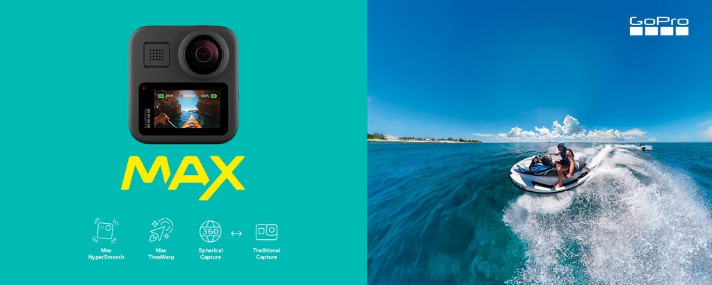 GoPro MAX rappresenta un vero punto di svolta per le videocamere sportive. Fonde in un’unica videocamera la tecnologia 360° e un’action cam. Con un semplice tasto, infatti, si può usare una sola ottica alla volta – Modalità HERO – o entrambe per acquisizioni sferiche – Modalità 360°.