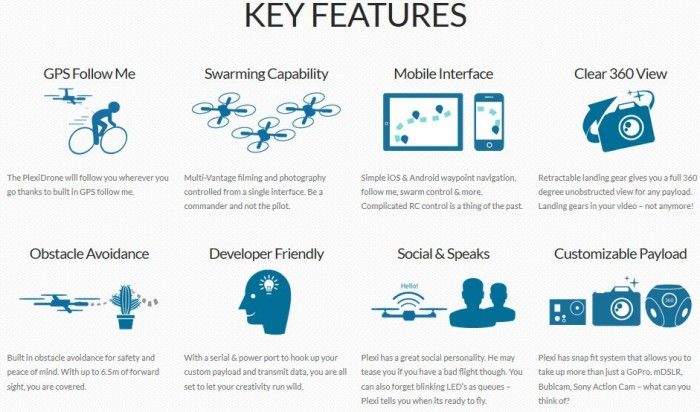 Come per i modelli sopracitati, PlexiDrone prevede una funzione denominata follow me e legata al GPS che permette di seguire una persona o un oggetto.
