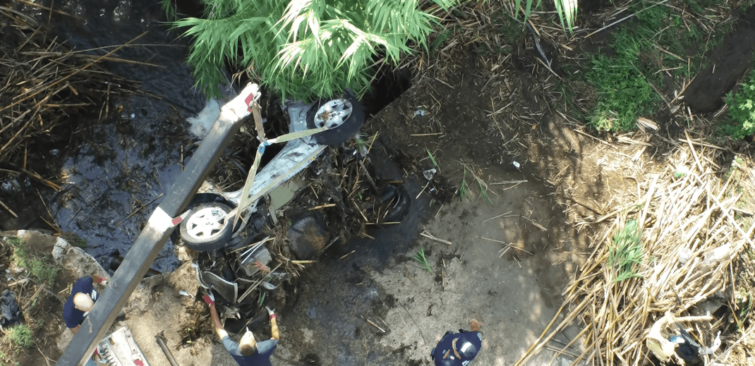L’impossibilità ad effettuare nell’immediatezza l’operazione di recupero ha reso necessario un costante monitoraggio ad opera dei poliziotti municipali abilitati al volo con il drone, al fine di individuare il sito idoneo per effettuare la complicata azione di recupero, mantenendo comunque alta l’attenzione sul “movimento” del veicolo lungo il corso della marana in modo tale da individuare ed intervenire per eventuali situazioni di pericolo in caso di sbarramento tale da ostruire completamente il normale deflusso dell’acqua e la conseguente esondazione.